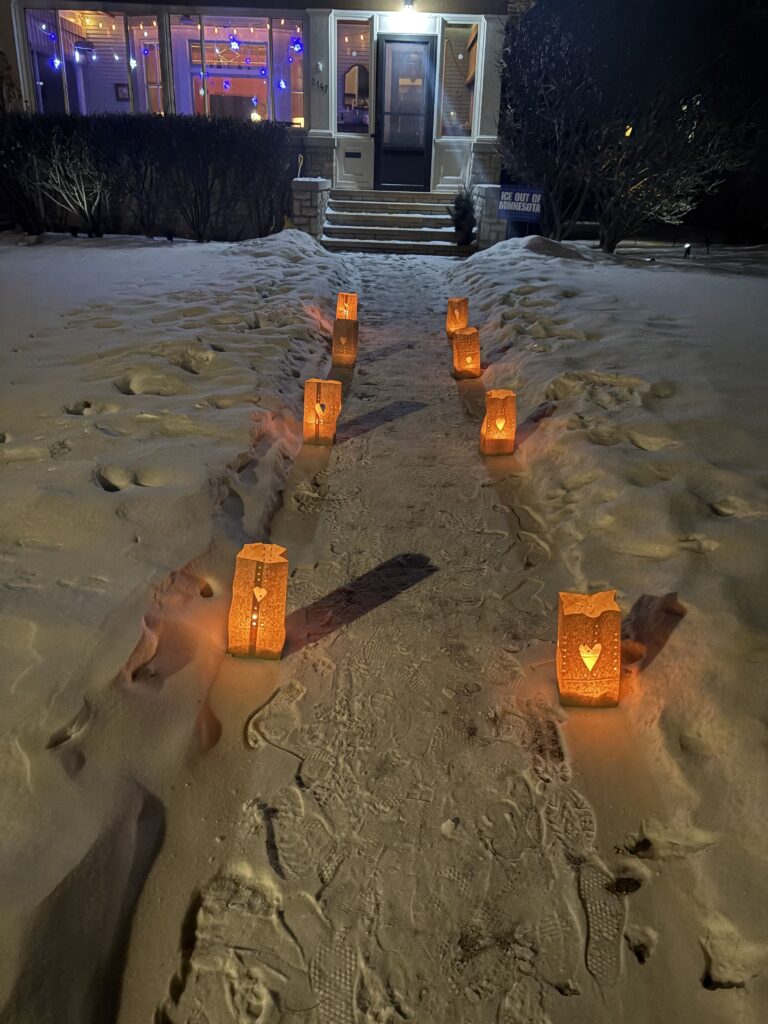 Merriam Park is showing up: Lights for Alex Pretti & Renee Good.