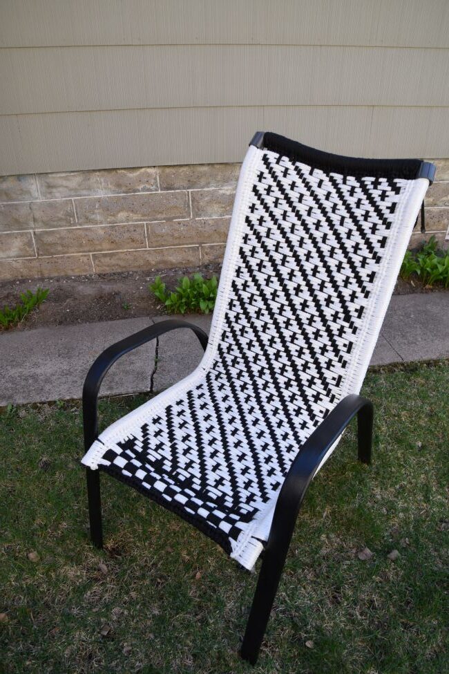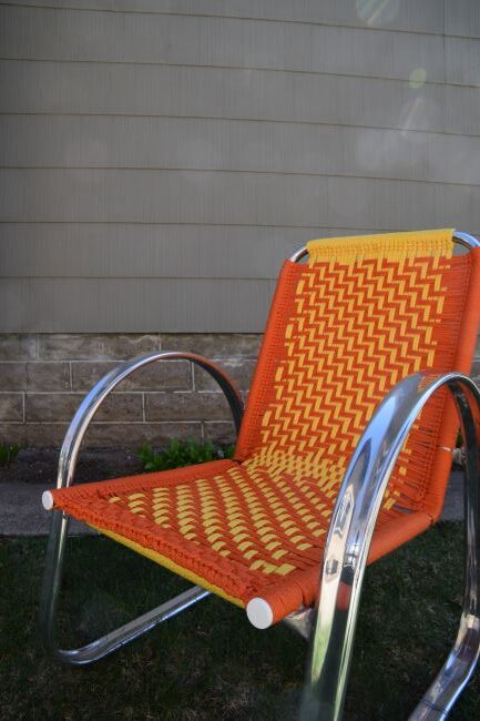 When my neighbor cleaned out her garage, she gave me an aluminum lawn chair. When I turned to YouTube for the instructions on how to re-web it, I discovered that people were using macramé cord to weave new seats onto old frames. I immediately wanted more chairs.